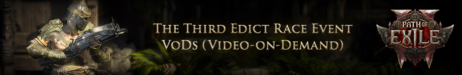 Das Finale dieser Race-Season wird nächste Woche stattfinden und wir können es kaum abwarten, wer zum Sieger gekrönt wird! Kommt vorbei auf www.twitch.tv/pathofexile, um das Geschehen live mitzuverfolgen, welches von ZiggyD und RaizQT moderiert wird. Das dritte und letzte Race startet um 12 Uhr am 19. Oktober (PDT), oder Okt. 19, 2025 3:00 PM (GMT-4) in eurer Zeitzone. Falls ihr verpasst habt, die ersten beiden Races live zu sehen, seht euch die VoDs unten an. |