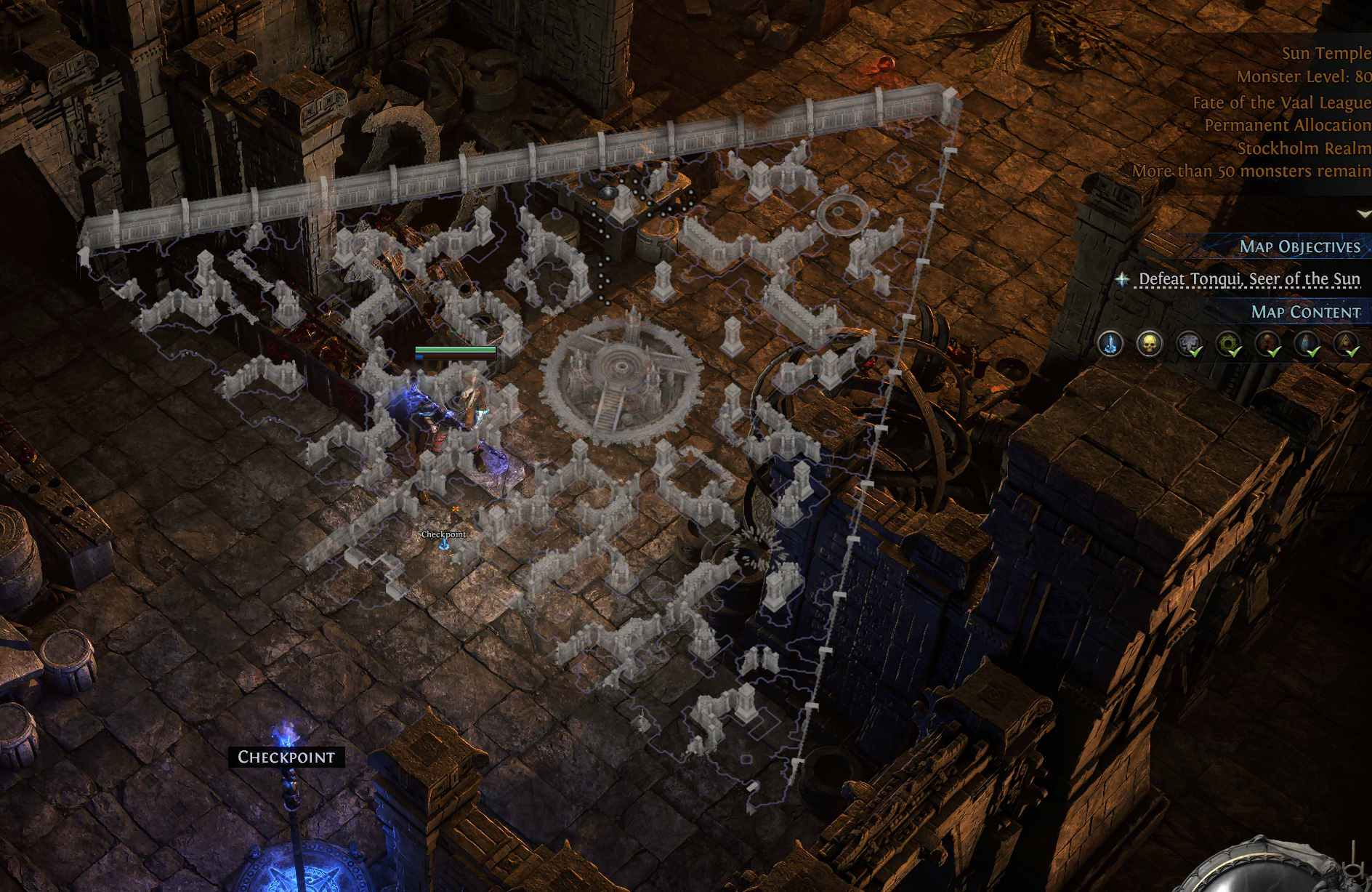 I can't progress through the map (tier 15 waystone) because there are no stairs (at least no interactable stairs). probably because I triggered the vaal temple portal? it somehow counts as the stairs? not sure.