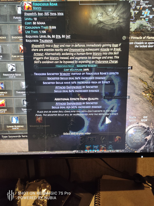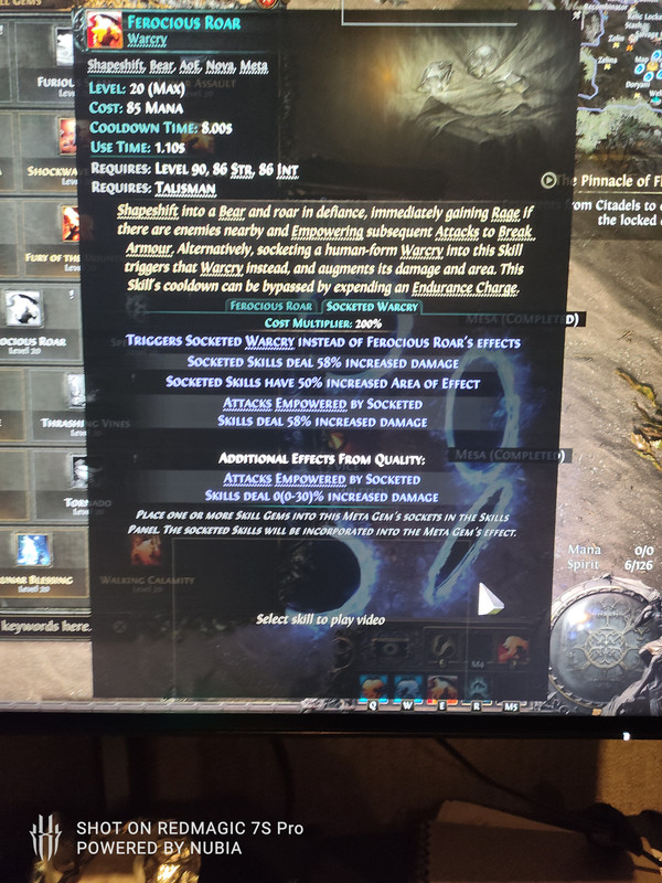 On leveling Ferocious Roar from 19 to 20lvl, it loses 26% of empoered damage from socketed warcry.