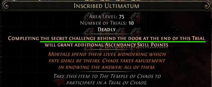 Completed a 10 rooms trial of chaos to get my final ascendancy points (It had on the description of the item that it would give me ascendcy points). Completed the trial, got the itens and the fragment to the trialmaster fight, interacted with the ascendancy thing to get my points....No points given